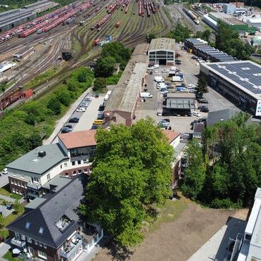 Auf der vielseitig genutzten Fläche soll hier neben der gewerblichen Nutzung geförderter Wohnraum entstehen. Das geplante Quartier schafft eine Verbindung zwischen dem vorhandenem Wohngebiet und der jetzigen "Alten Schmiede".