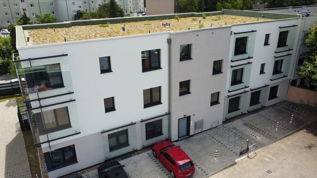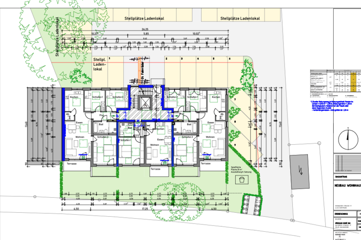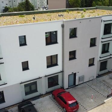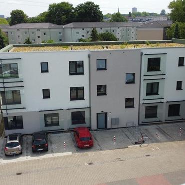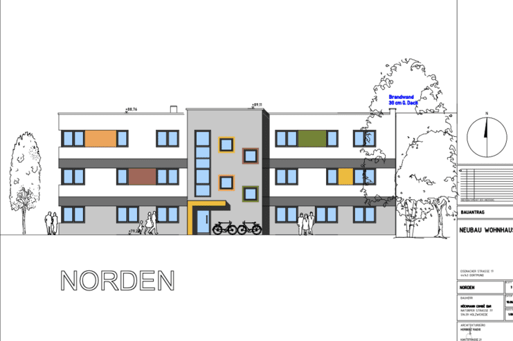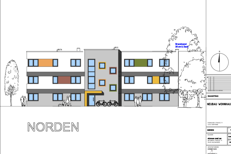 Hier enstanden 11 Wohneinheiten mit insgesamt 670 m² Wohnfläche, PKW- und Fahrradstellplätzen.