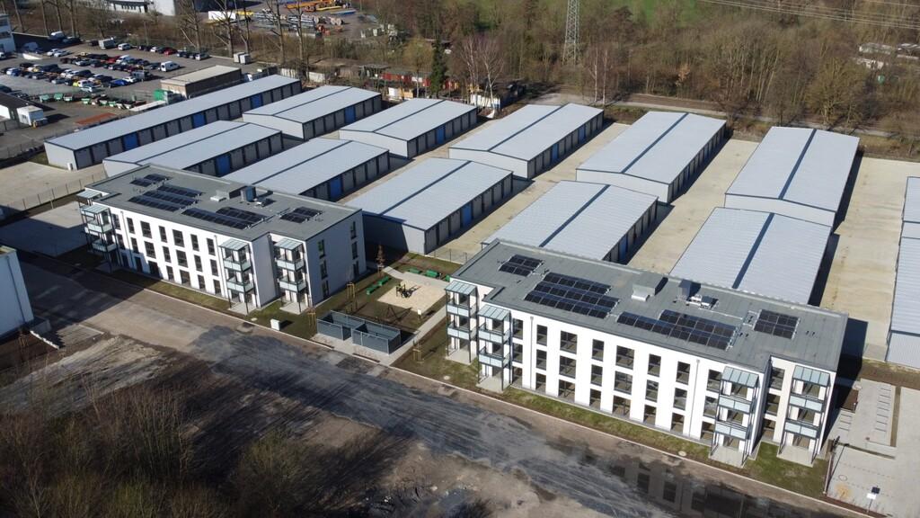 Hier entstanden 24 Wohnungen mit einer gesamten Wohnfläche von ca. 2.400 m², sowie PKW- und Fahrradstellplätzen.