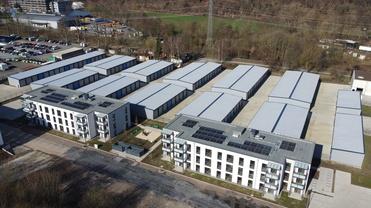 Hier entstanden auf einer Grundfläche von ca. 14.000 m², 213 XXL-Garagen, Einheiten für Privat- und Kleingewerbe.